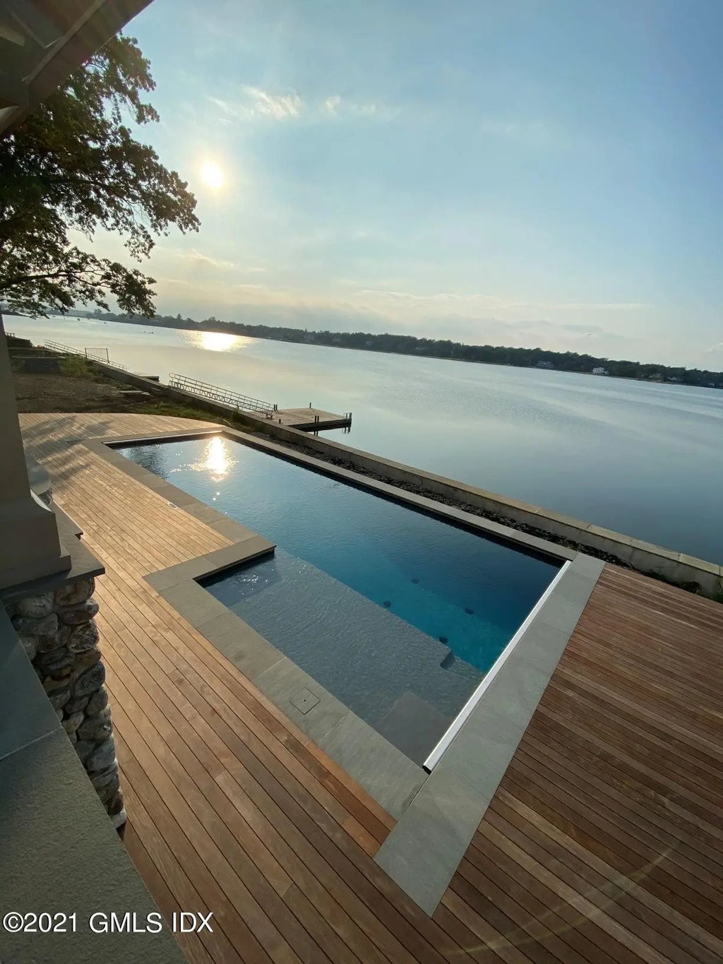 This sun-filled 2021 custom home offers dramatic views of Greenwich Cove with curved exterior walls of glass. The luxury finishes throughout highlight the attention to detail from the gourmet kitchen to Primary bedroom with fireplace, luxurious bath and hidden outdoor shower. Formal/informal entertaining spaces all connect to terraces, Lanai and stairs to beautiful Shoreline saltwater pool. 6 bedrooms , 5 baths and 2 powder rooms. Some features are elevator, generator, undercover cabana area and private dock. Set within Lucas Point, a private assoc near Tod's Point with it's own beach and boatyard.