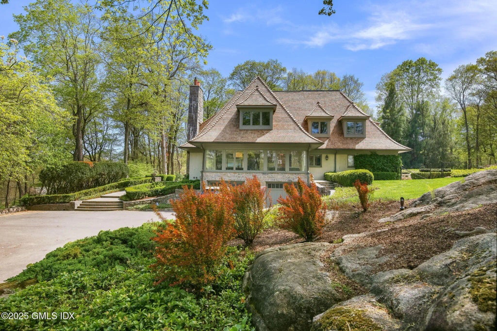 Situated high above Perkins Road on 2.6 acres this gated mid country 5 bedroom/5 bath residence is the ultimate in CHIC style and architectural SOPHISTICATION while also offering cozy comfort. This beautiful home has been recently updated by the current owner with many major high end improvements... including a new cedar roof, new HVAC system and conversion to propane. Second floor primary suite with, luxurious bath, 2 dressing rooms, sitting room, home office, additional bath and gym. 3 Bedrooms on first floor and beautiful lower level BR and bath. Level fenced in lawn with town approved pool site . A must see that is triple mint and move in ready.