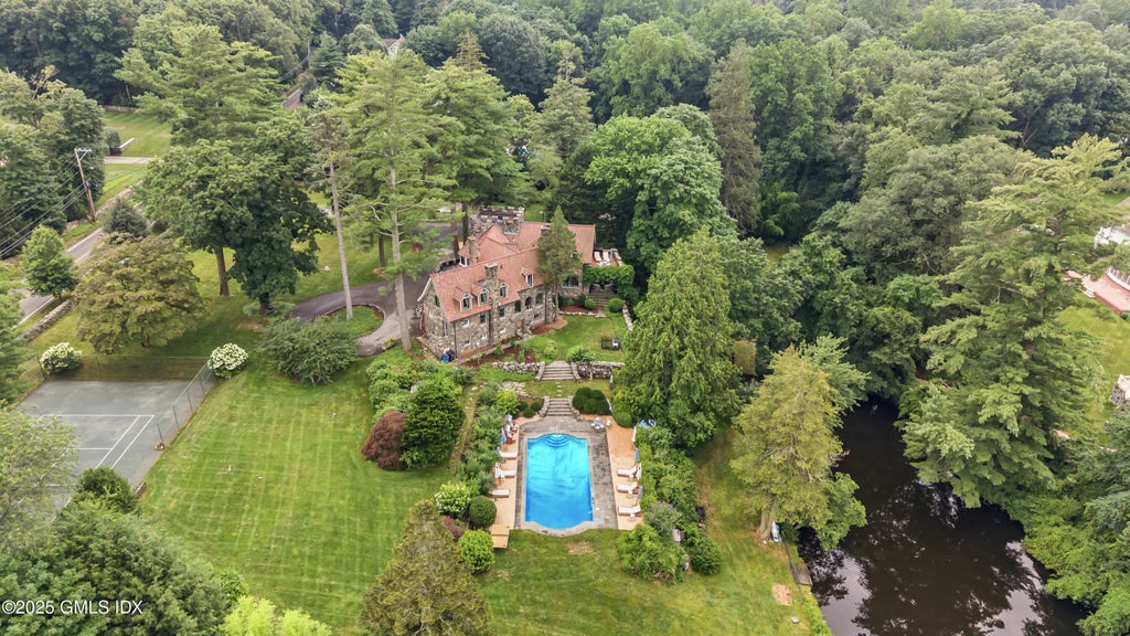 ''Chateau Chadeline'' is an architectural landmark,located in prime mid country on Lake Avenue. This impressive stone manor has undergone a complete renovation. There are 6 spa-like ensuite bedrooms, 2 saunas, a restored guest cottage, heated pool, Har-Tru tennis court and dock. This 1903 treasure is sited high on 2.83 acres with sights and sounds of 3 cascading waterfalls. Original architectural details are retained and enhanced with a new chic aesthetic of expansive living areas, sun-drenched rooms, and soaring ceilings, Chef's kitchen is separated by two dramatic stoned-arched doorways opening to a large family room and dining niche with views of pool and property. Bedroom and Library complete the first floor. Lower level Spa with bedroom and laundry opens to the pool and gardens. Exceptional Guest Cottage is beautifully renovated with large open living area, large gourmet kitchen, 2 bedrooms, and an outdoor deck with views of waterfalls. A must see!