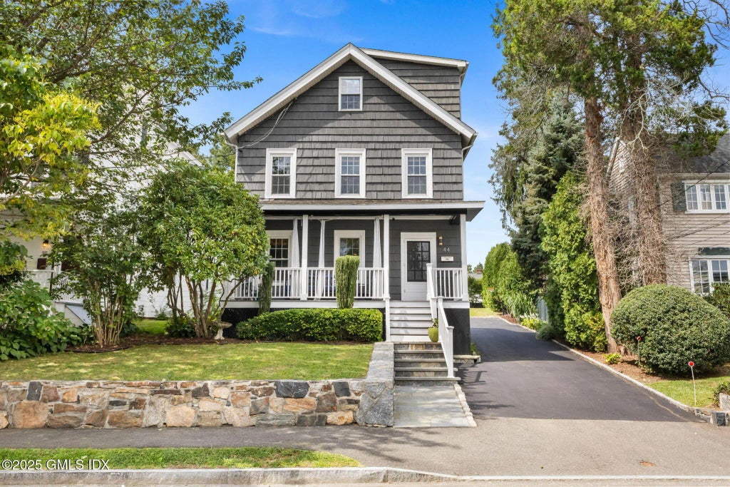 Prime Greenwich Location. This 4bed,3.5 bath on over a quarter acre blends classic charm with modern ease. Just moments from Greenwich Ave the residence features an open-concept living space with a gas fireplace, deluxe kitchen and a private primary suite with spacious walk-in closet. Three additional well-appointed bedrooms provide space for family or guests. Enjoy sunrise coffee on the covered front porch or step outback to a west facing backyard designed for relaxation and entertaining, large level yard, lush private landscaping, an outdoor fireplace, flagstone patio, and deck ,perfect for enjoying sunsets. Additional 600 sqft of storage in basement. Also Available for Rent.
